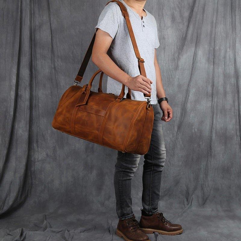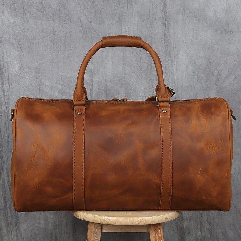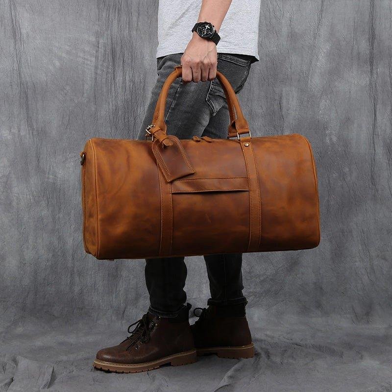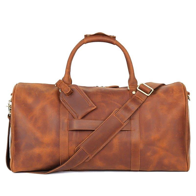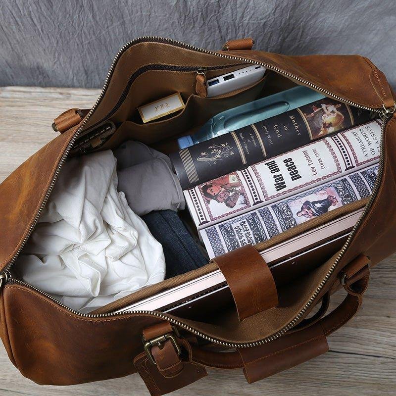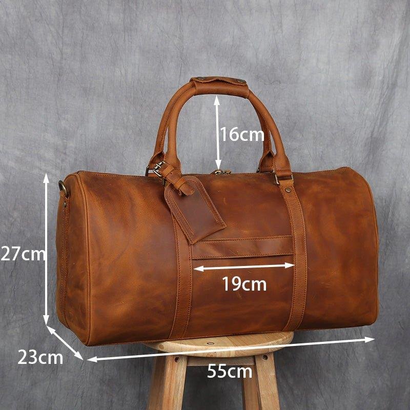 You will be amazed at the size of this large leather travel bag, the large main compartment with a large capacity, can hold a variety of styles of clothing, books and travel essentials. This bag is perfect for a 5-7 day weekend or business trip.