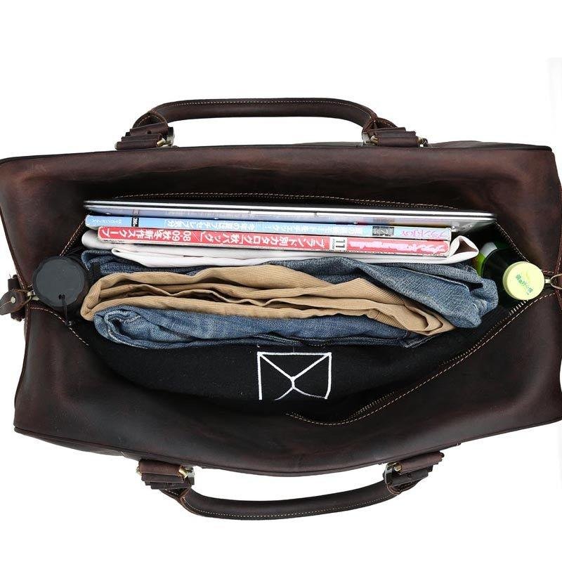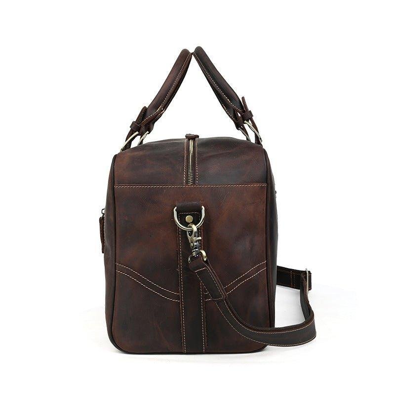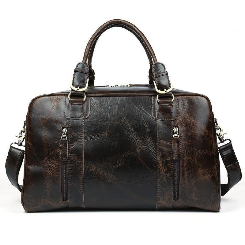 This vintage leather duffle travel weekender bag will surely kick off your weekend holidays in its special design.Its vintage style will make you special.It has large capacity design,the front pocket and back zipper pocket make it easy to get your small necessities.