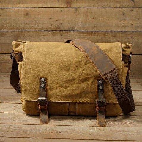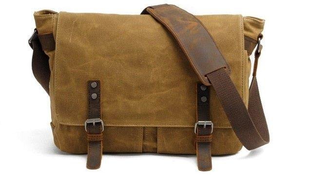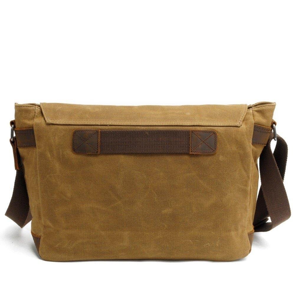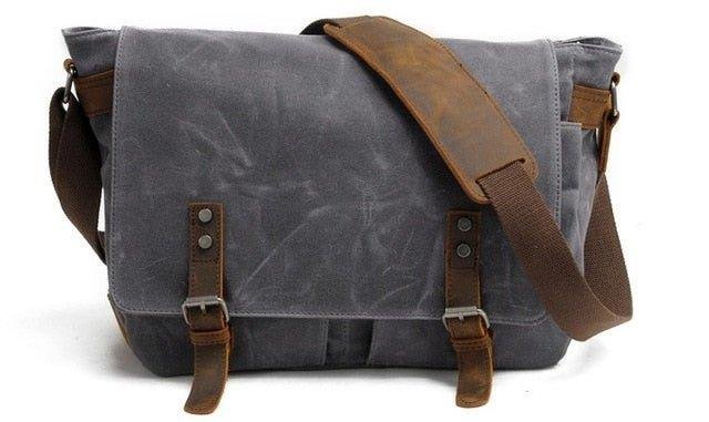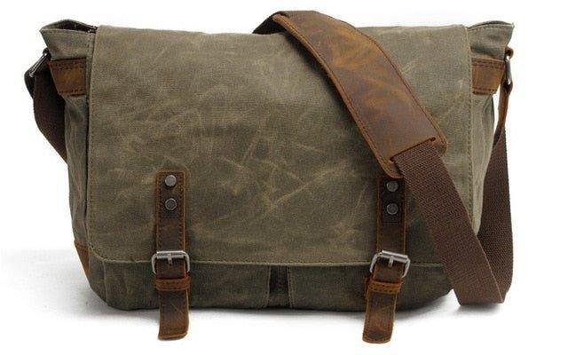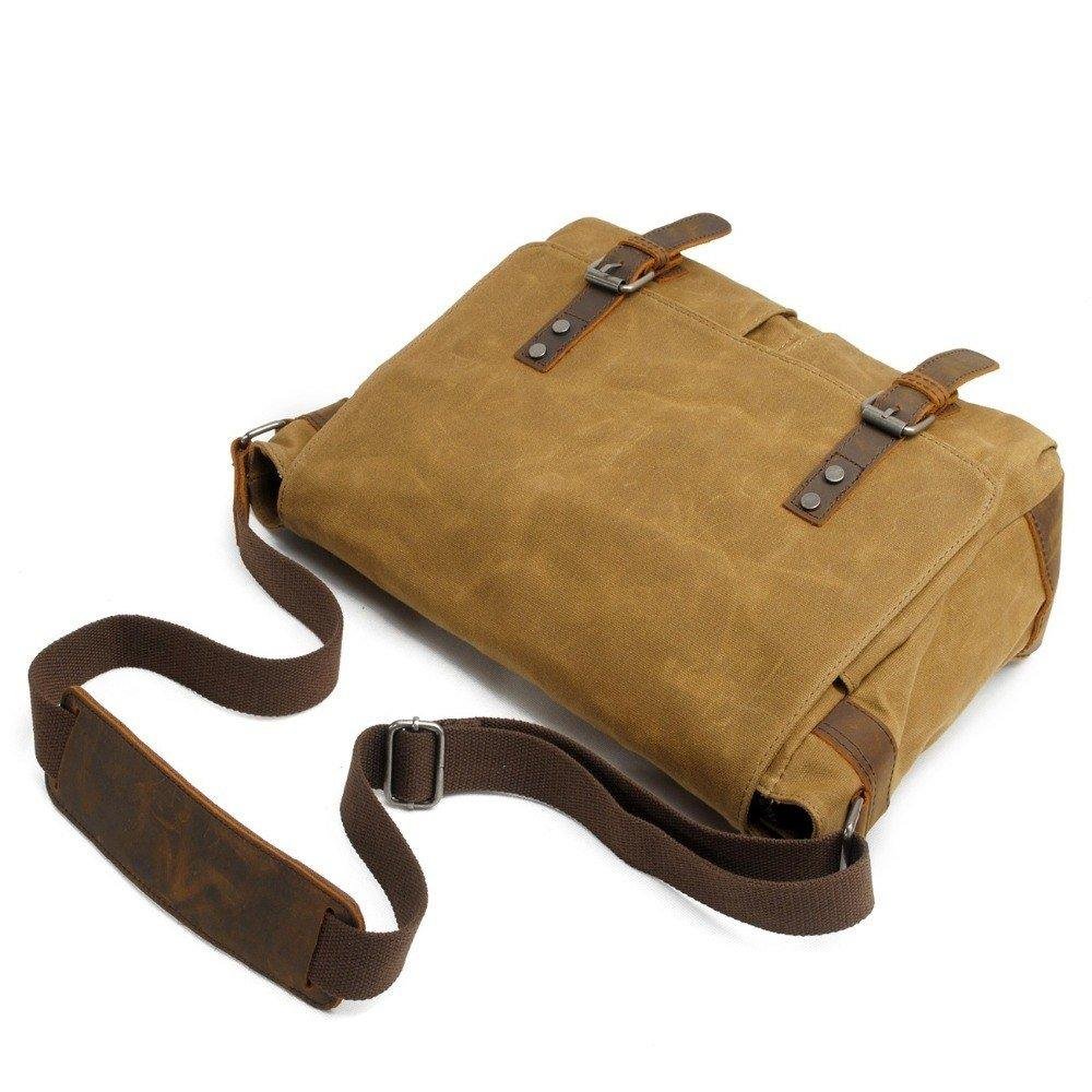 HIGH QUALITY MATERIAL:Waterproof Canvas Men’s Vintage Genuine Leather Laptop Messenger Bags. original wax canvas + superior cowhide leather+bronze hardware. Durable Leather top handle and adjustable shoulder strap.