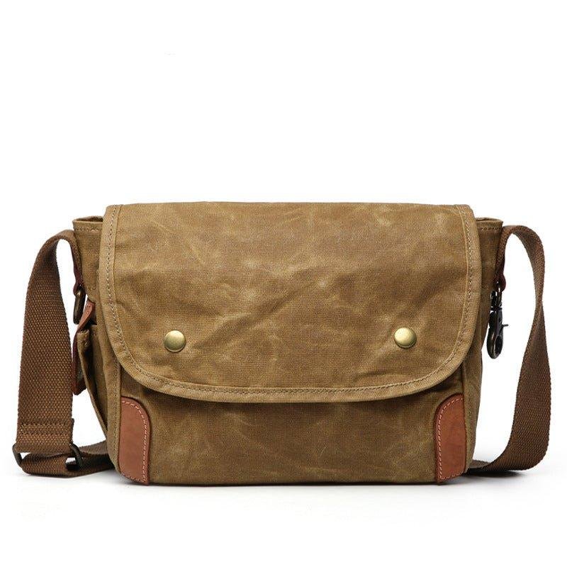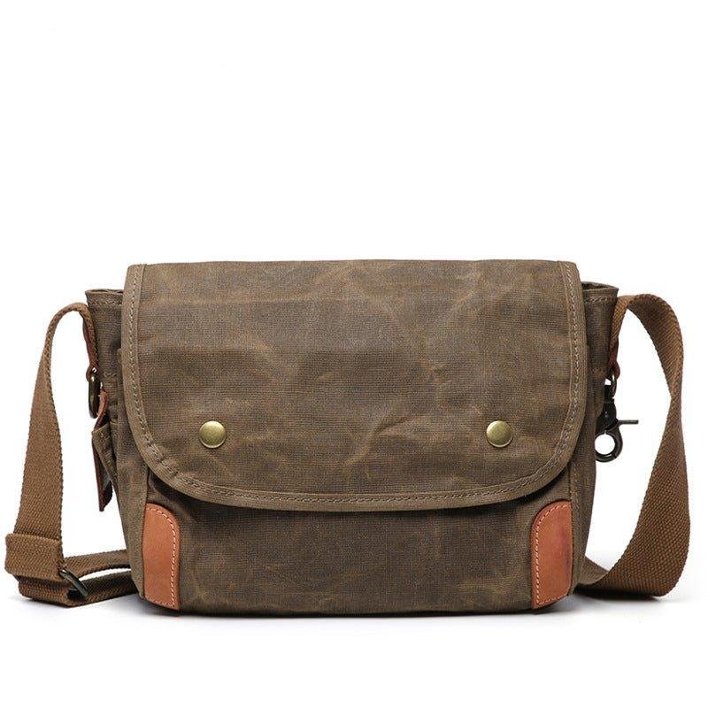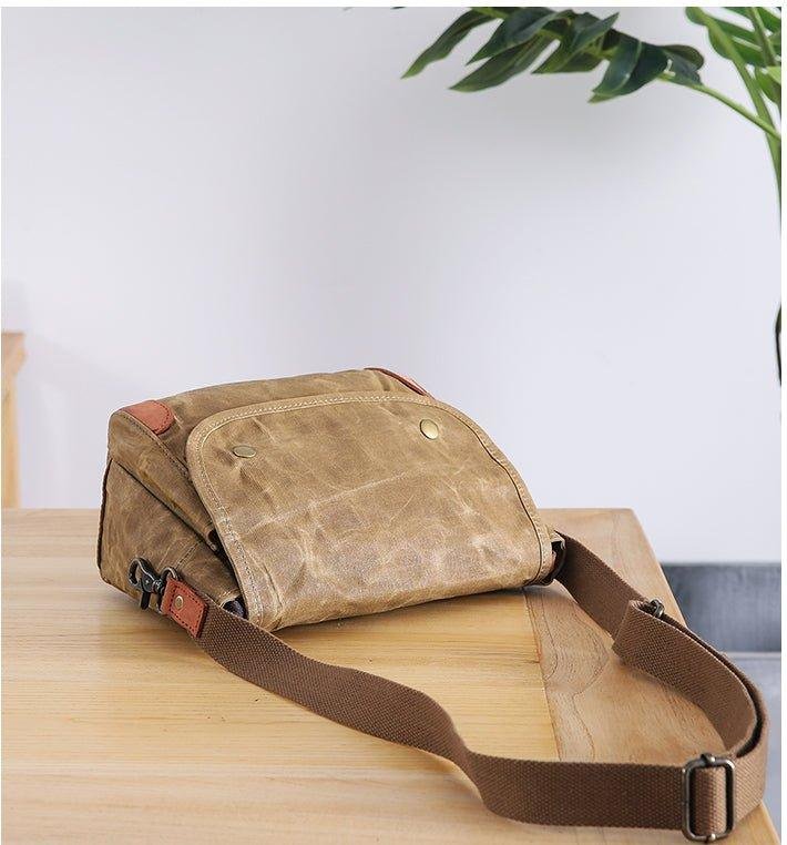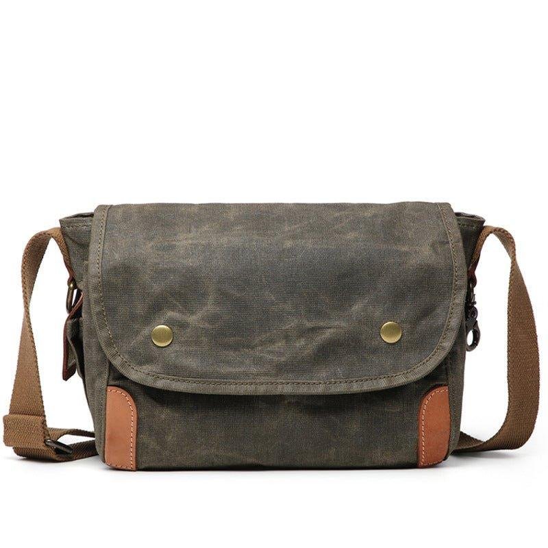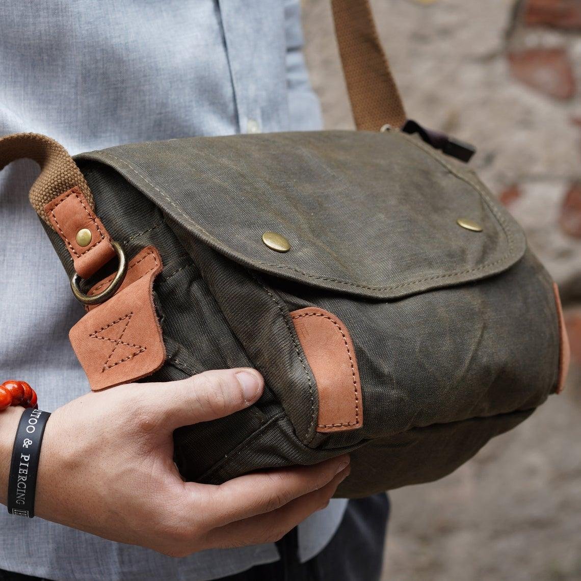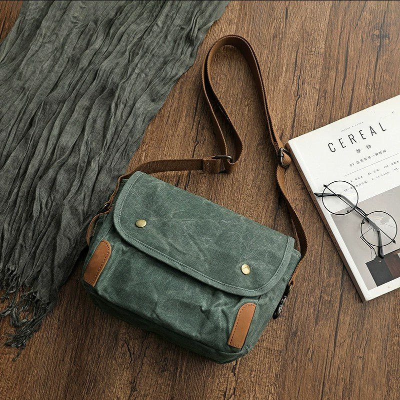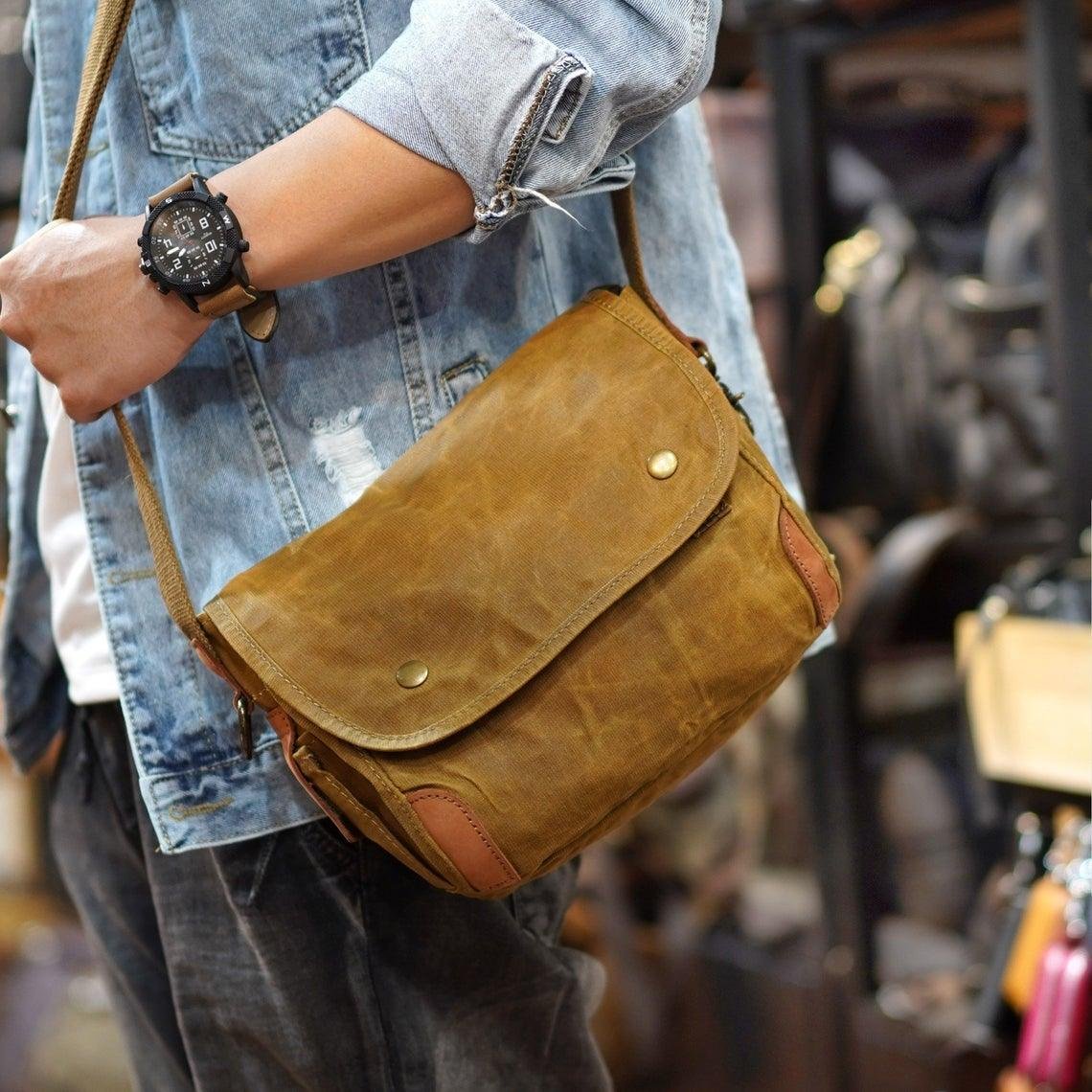 The Small Messenger Bag Waxed Canvas Mens is a stylish and functional bag that is perfect for everyday use. It is made from a waxed canvas material that is waterproof and durable. The bag features 2 side pockets for quick access items. The bag also comes with adjustable shoulder straps and a comfortable carrying handle. It is ideal for carrying laptops, books, documents, and other items.