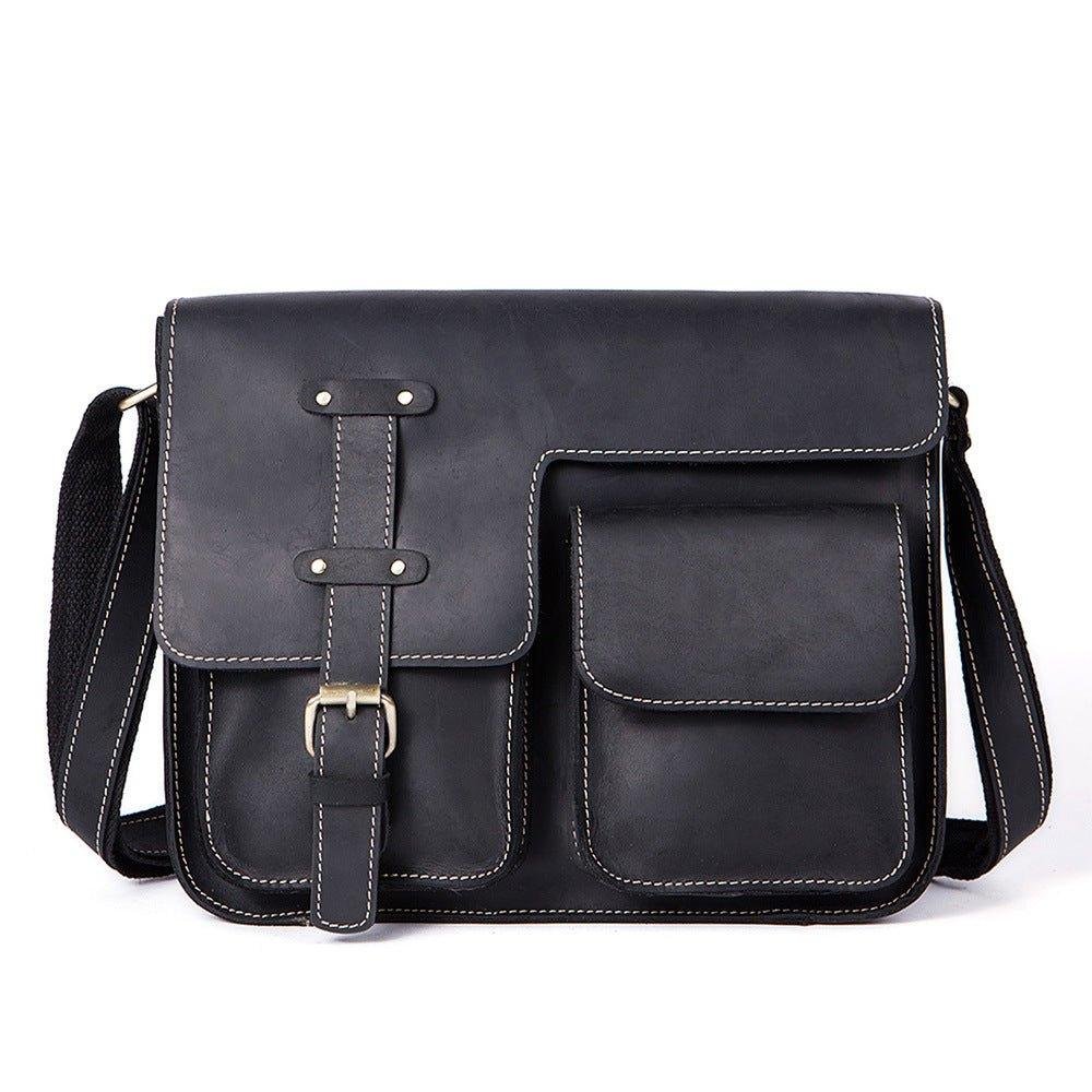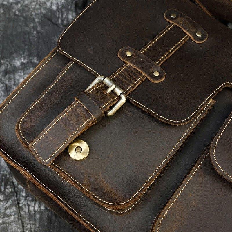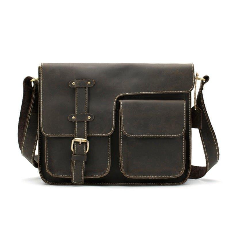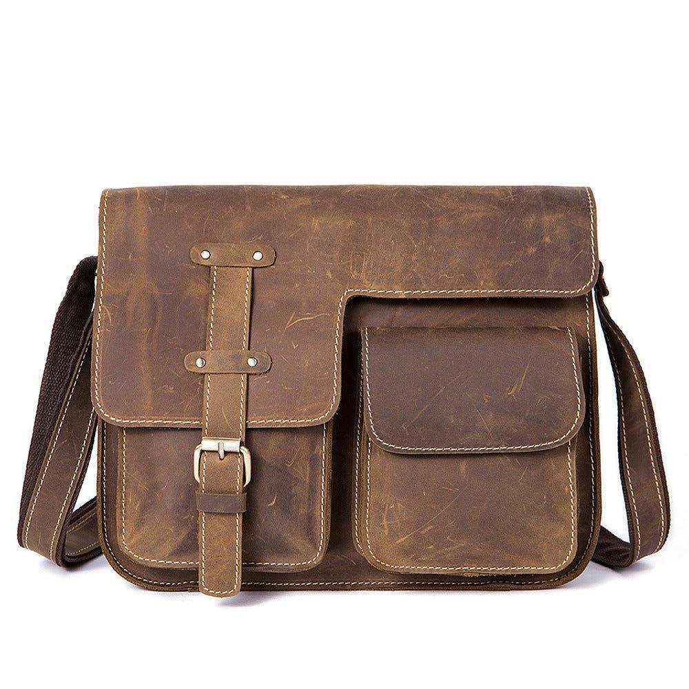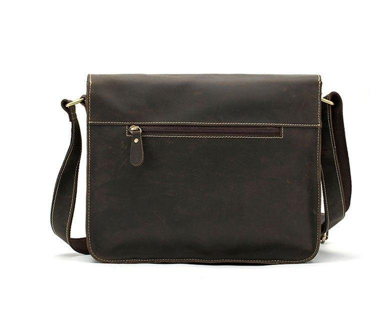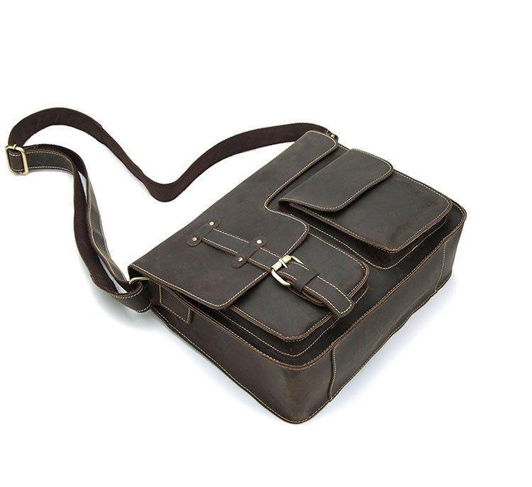 This vintage messenger bag is made of top grain leather.With multi-pockets,you can organize your stuff well.There is a back zip pocket,you can put small things such as bus cards,cions,which is convenient for daily use.