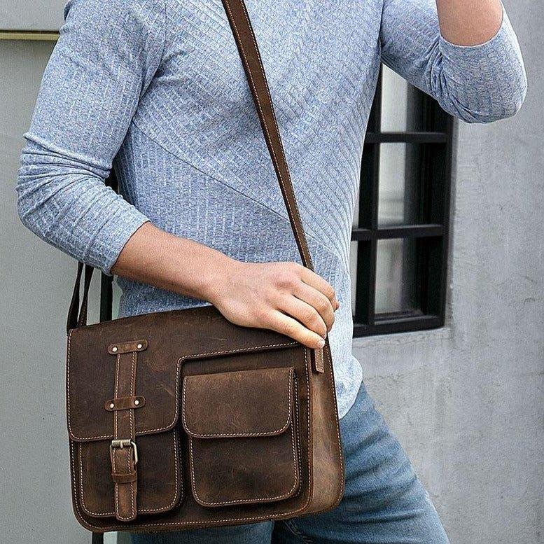 A very practical and stylish leather messenger bag, ideal for work or college, carrying books, Ipad Mini, 12″ inches laptop & documents etc. Also a stylish appearance for a day walk.