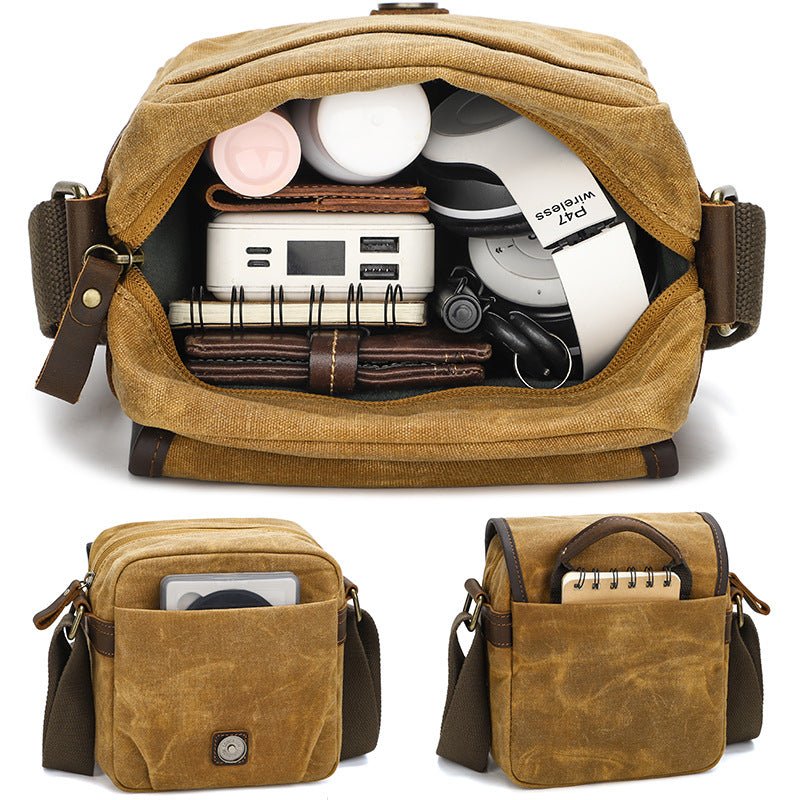 Crafted for the modern adventurer, the Woosir Durable Waterproof Waxed Canvas Messenger Bag combines rugged functionality with timeless style. Made from premium waterproof waxed canvas and genuine leather, this bag ensures your gear stays protected in all weather conditions. The spacious interior is perfect for storing cameras, lenses, tablets, and daily essentials, while multiple compartments keep everything organized. With its adjustable shoulder strap and classic design, it’s an ideal choice for photographers, commuters, and outdoor enthusiasts. Available in Khaki, Army Green, and Dark Grey, this messenger bag offers durability and versatility for every journey.