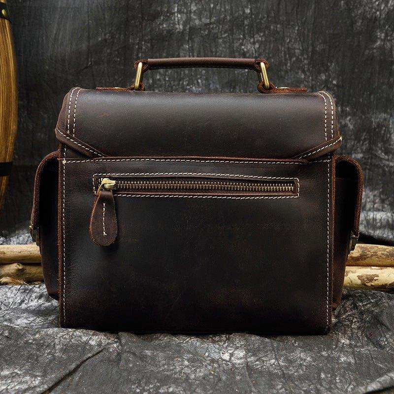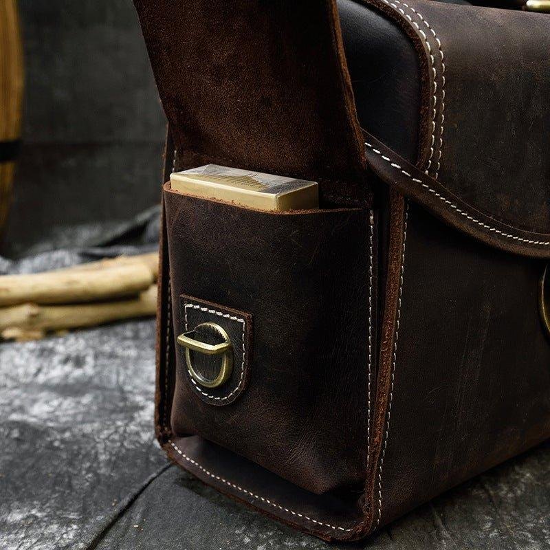 A simple,vogue design leather Camera Bag,Travel bag,This bag adds one button, it will be more simple and convenient, there are two small pockets on both sides of the bag. You will notice that handle is so simple and durability. Use thick leather with Waxed thread making , the entire production design,hand mined material, hand perforate ,hand sewing,all done by hand without the use of electrical equipment.